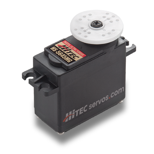 The digital version of our popular HS-645 is the HS-5645MG, featuring a programmable digital circuit and our custom MP/metal gear train technology. Perfect for larger airplanes and helis, the HS-5645MG will deliver higher resolution and torque than its analog brother.