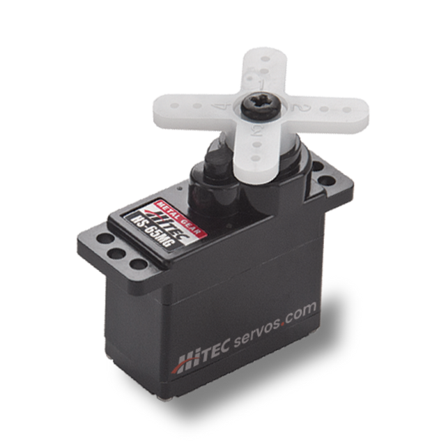 Considered one of the most powerful servos in the micro class, the HS-65 is offered with a choice of shock resistant Metal or zero wear Karbonite gears. The 65 series features a top-ball bearing for long life and positive centering, 31 ounces/inches of power at 6 volts and is an excellent choice for higher performance micro helicopters, electric park flyers, and 1/18 scale cars.