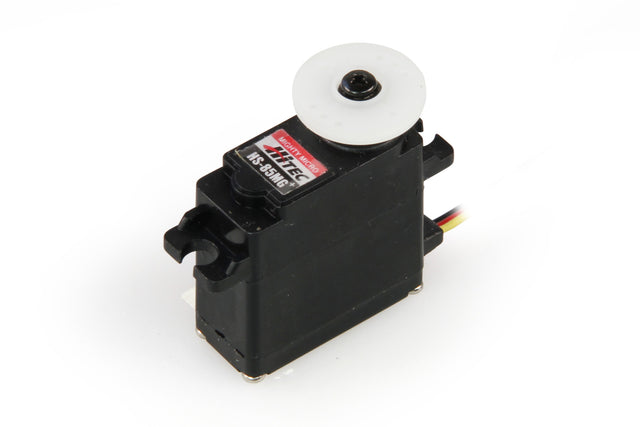 The HS-85MG features a high power motor for greater speed and torque. The HS-85MG is the choice of modelers looking for a high performance servo without breaking the bank. The ball bearing supported output shaft and sturdy gear trains are preferred for smaller glow and electric airplanes, helis and sail planes.